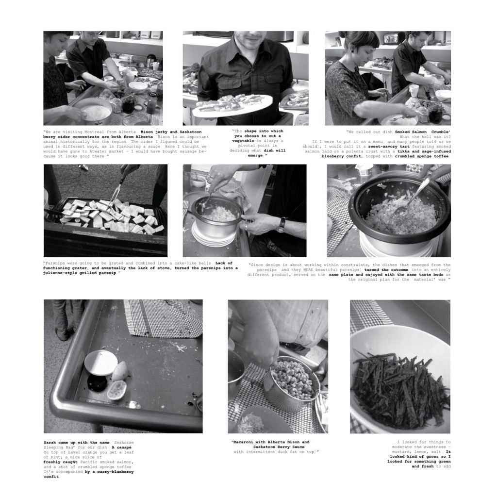 DesignCity participants observed that Montréal has a rich culinary tradition, influenced both by its geography and by its ever-shifting cultural makeup. We explored this confluence of factors in the micro-foodscape, through collaboration on a local meal that integrated diverse global influences and products. Some of the participants were long-time Montréalers, still others in the process of settling within the city, while the majority were simply visiting.