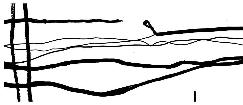 Later, I collect more stories from Josh [Singer]1 and Alice [Jarry]2 about their earliest memories of riding a bike, and ask them to trace out the routes they took with meandering lines on scrap paper. Back in my room, I transcribe excerpts from the three stories on a large sheet of paper recovered from the trash.