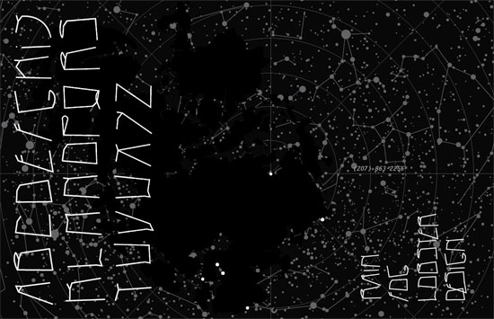 The letterforms presented here are constructed based on points of cell phone reception that the group discovered across the island, and includes the shared landline at the Poor Farm. Strokes are drawn across the air based on these points, as if a phone call were mapped. Peter stands in front of David’s vacation rental, and phones the Ferry Terminal where Ann is waiting for her phone to be dropped off. Sunniya stands in front of the Charming House, and calls Ben at the Low Tide Gallery; the tide has come in, the call is dropped. These calls form the letter T.