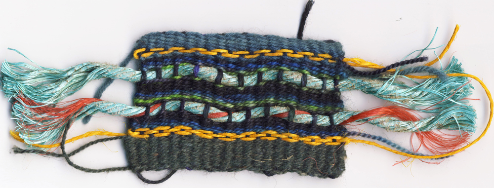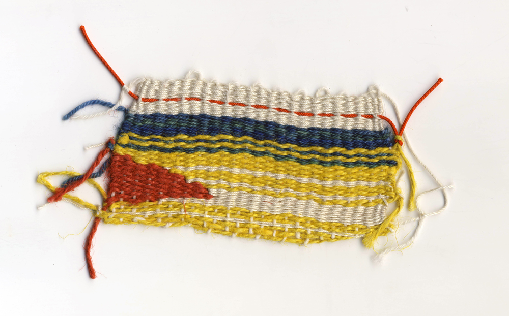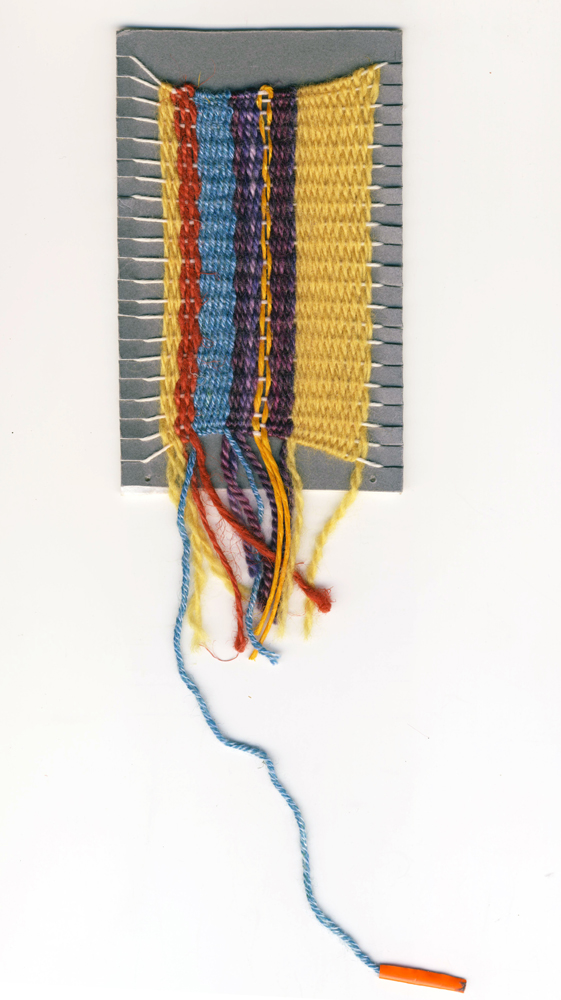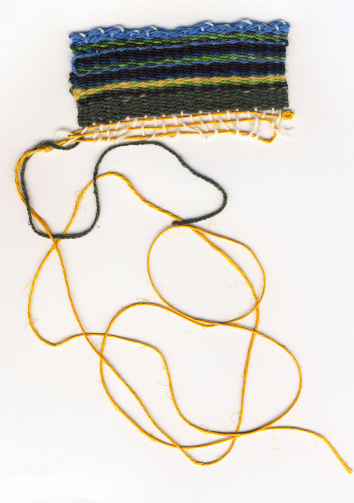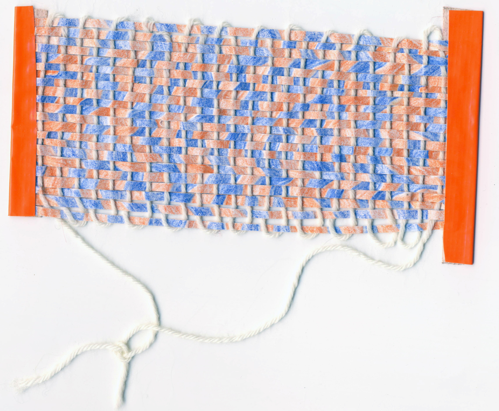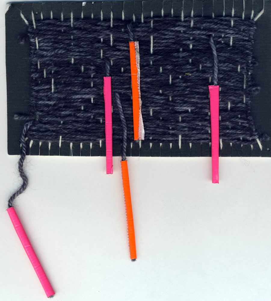 >>FF> DesignInquirers DIers, including myself, were overcome by a strange fad/mania after I introduced the idea of a workshop that hits the pause button, allowing participants to reflect on a sense of lost and found time and to play with the experience of real time and slow time. I was surprised and pleased by the success of the hands-on part of the activity, as a young scholar and new teacher I’m still finding my place in my chosen discipline of material culture. The small weavings confirmed my belief that process is important, even to those of who work with materials in our own practice. Sometimes simplicity is best when it comes to projects, and small tapestries are really some of the simplest textile projects one can create. The process of weaving in this case seemed to tap into some deeper need for participants, and inspire textile weavings, paper weavings, and even weavings made of grass and plastic.